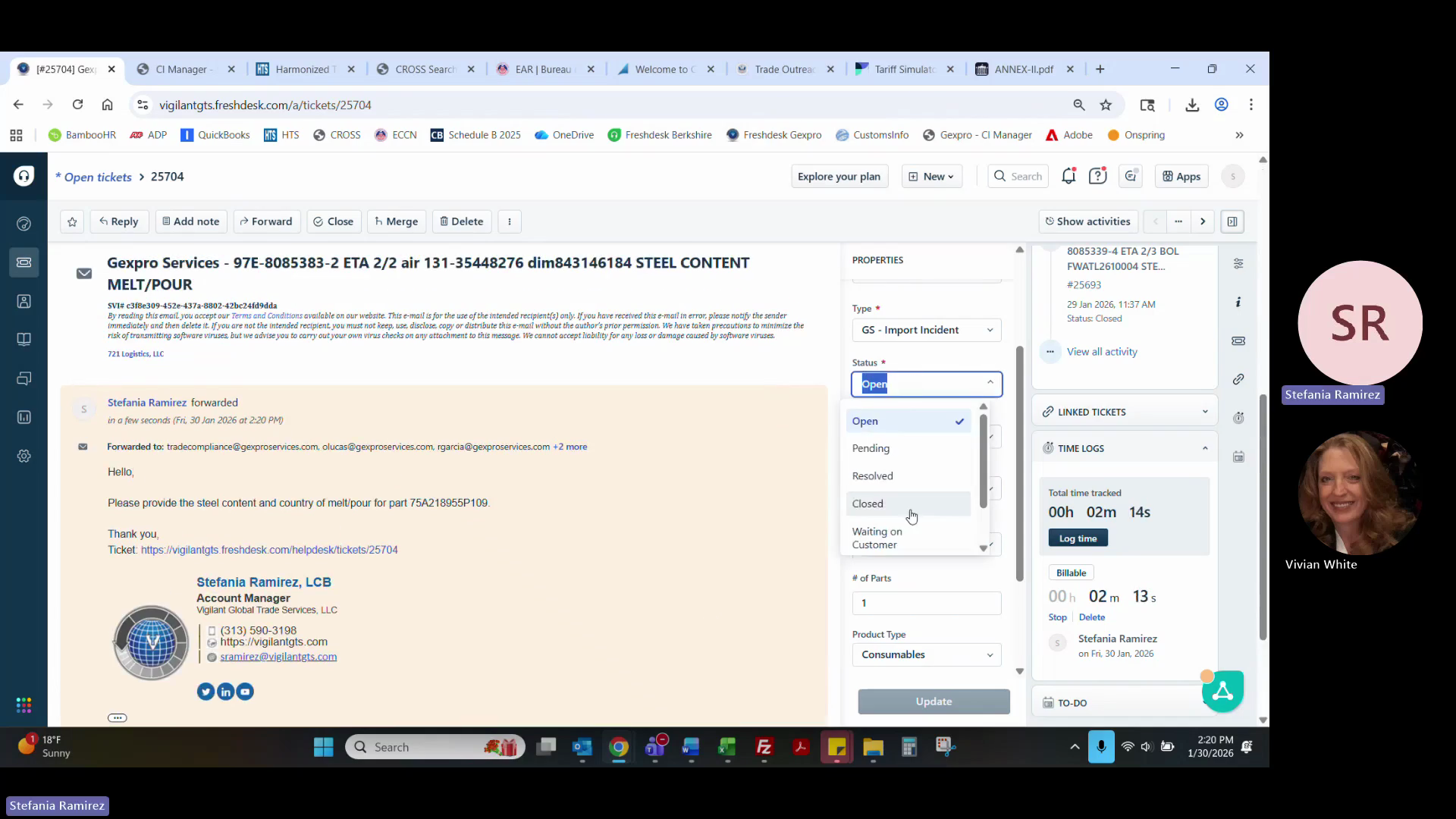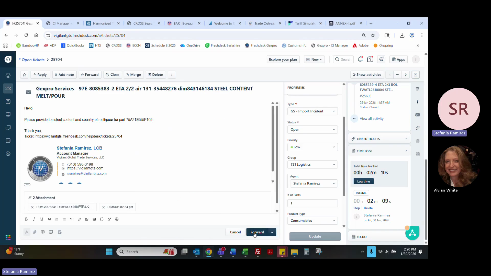 If the request involves Free Trade Agreements (FTA), note that clients typically only open tickets for USMCA verification, as KORUS parts are usually maintained in a separate broker file.