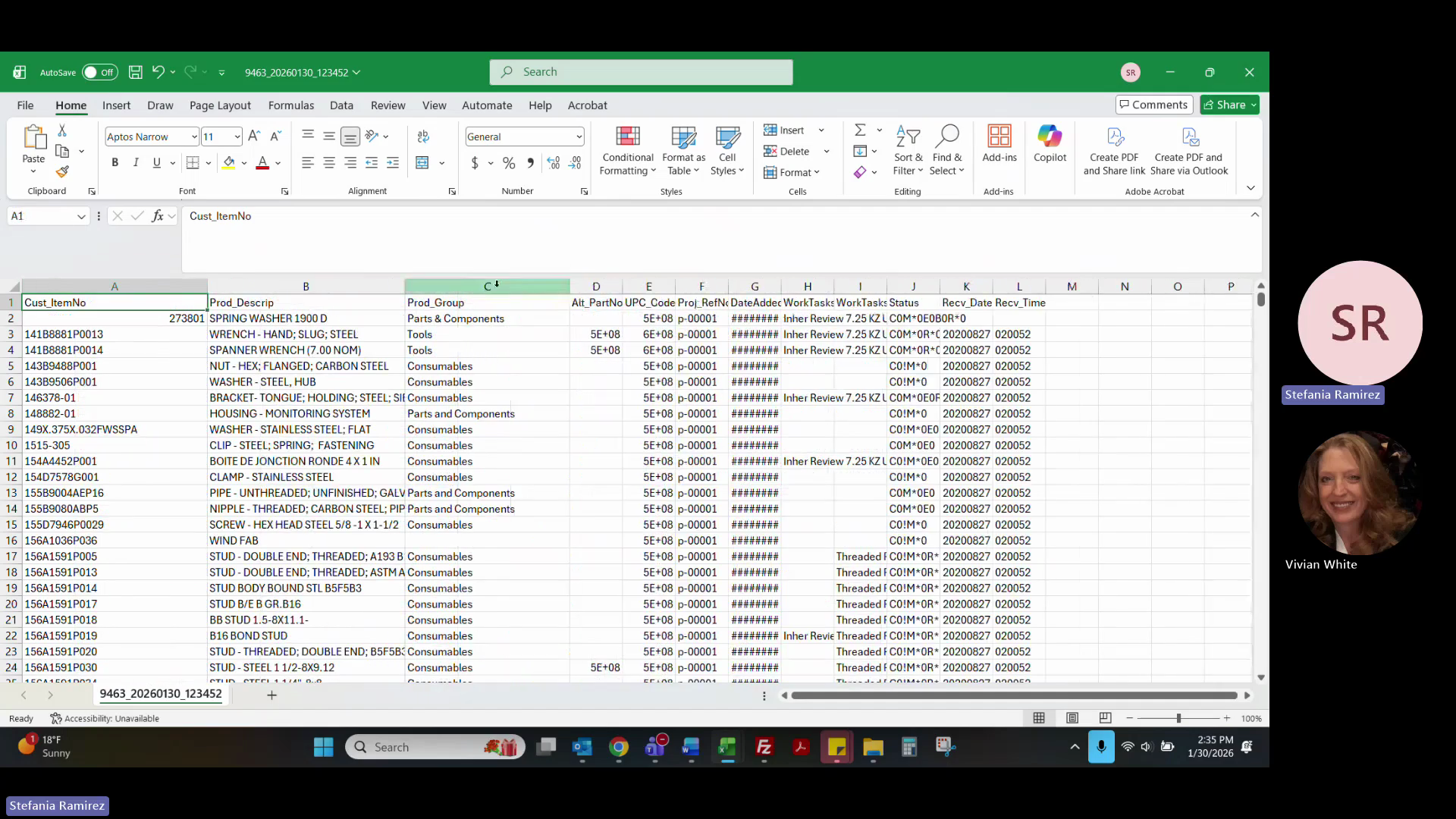 Consolidate the downloaded reports into a single master Excel sheet, matching them by part number, and delete any unnecessary system columns.