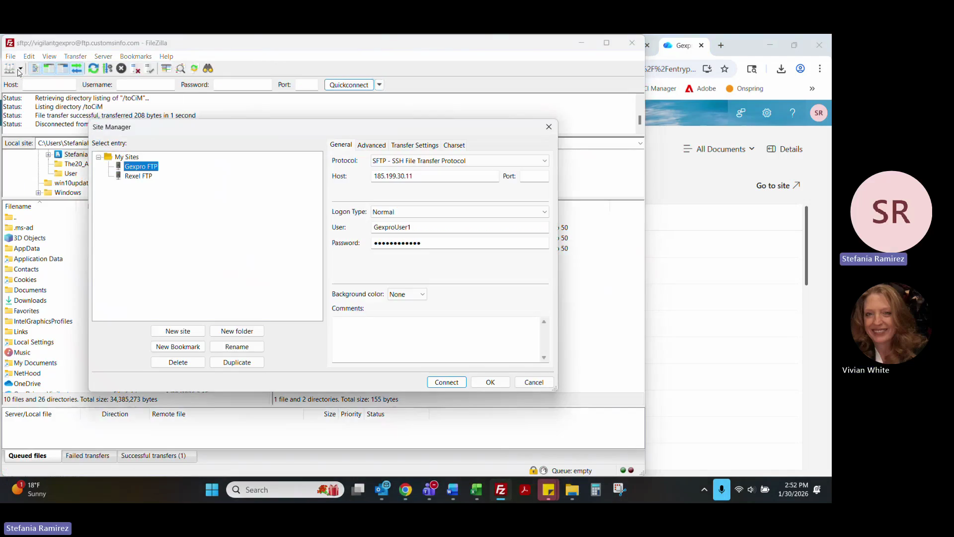 In the Site Manager, select the appropriate SFTP profile and click Connect.