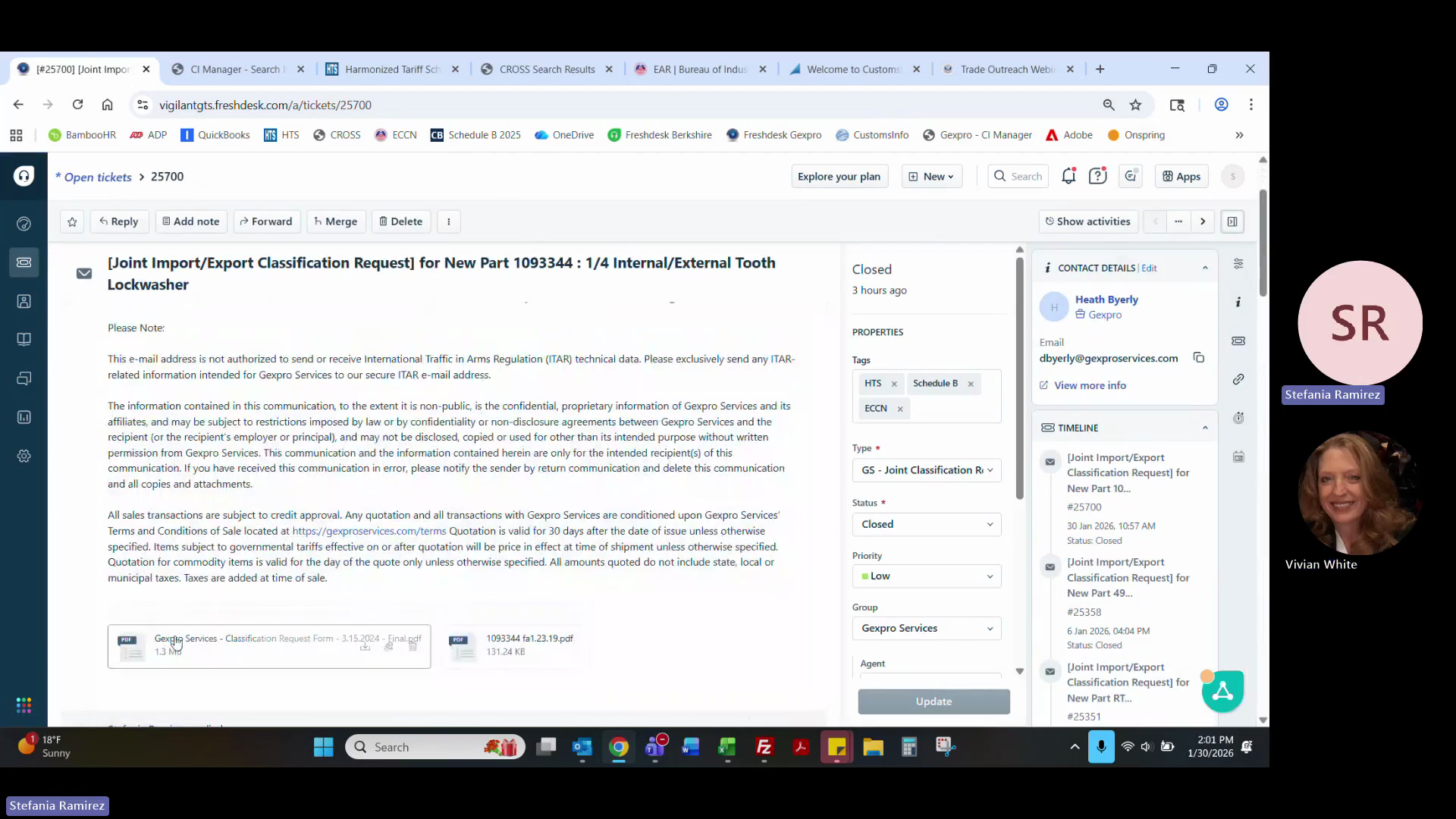 When a client submits a new classification request, it will automatically generate a ticket in Freshdesk containing a request form and any accompanying documentation (drawings, specs).