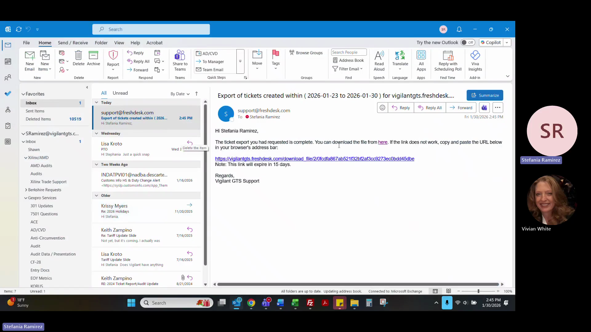 Locate and open the local folder corresponding to the Freshdesk ticket number.