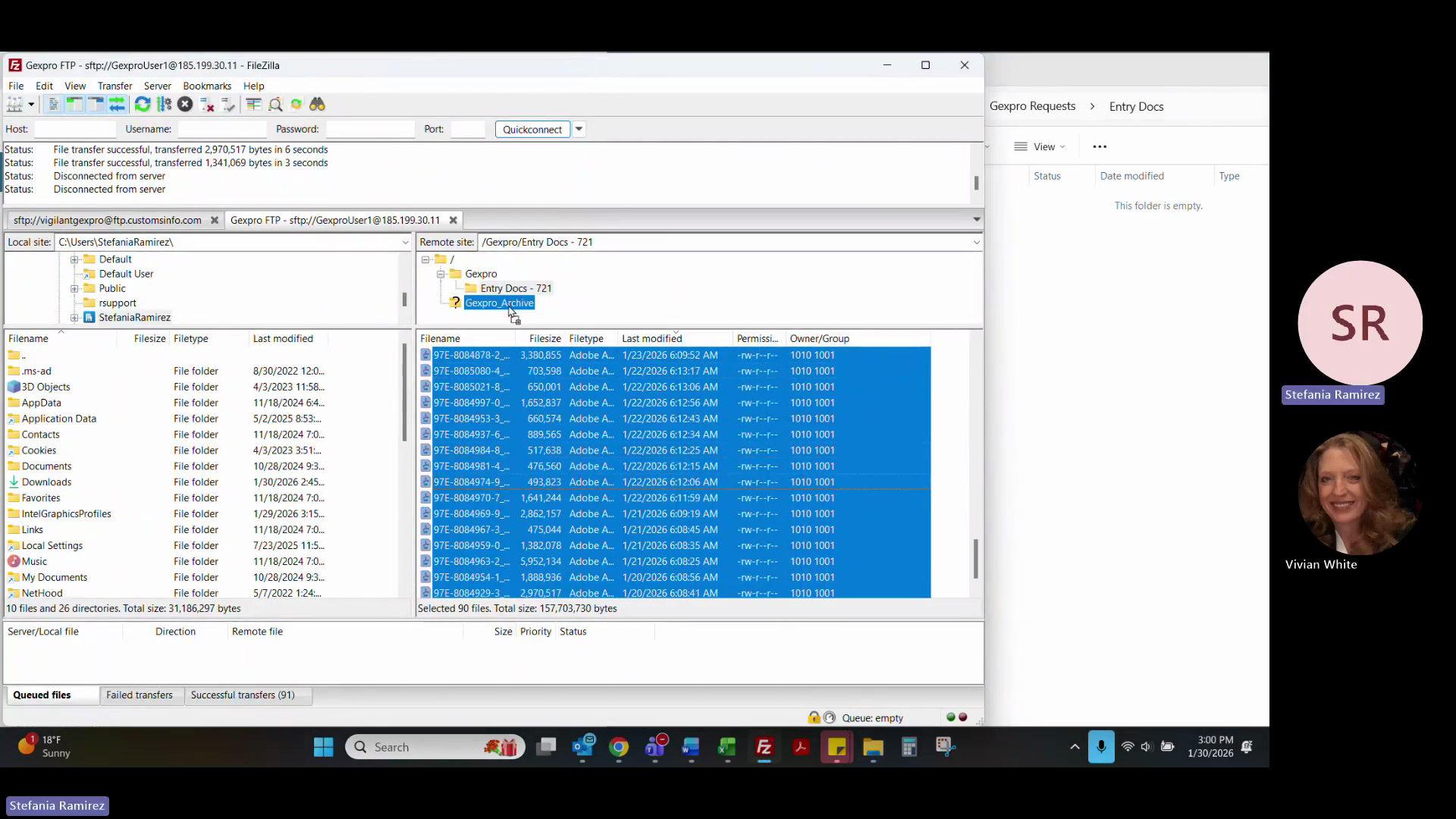 In FileZilla, move the processed files into the archive directory.