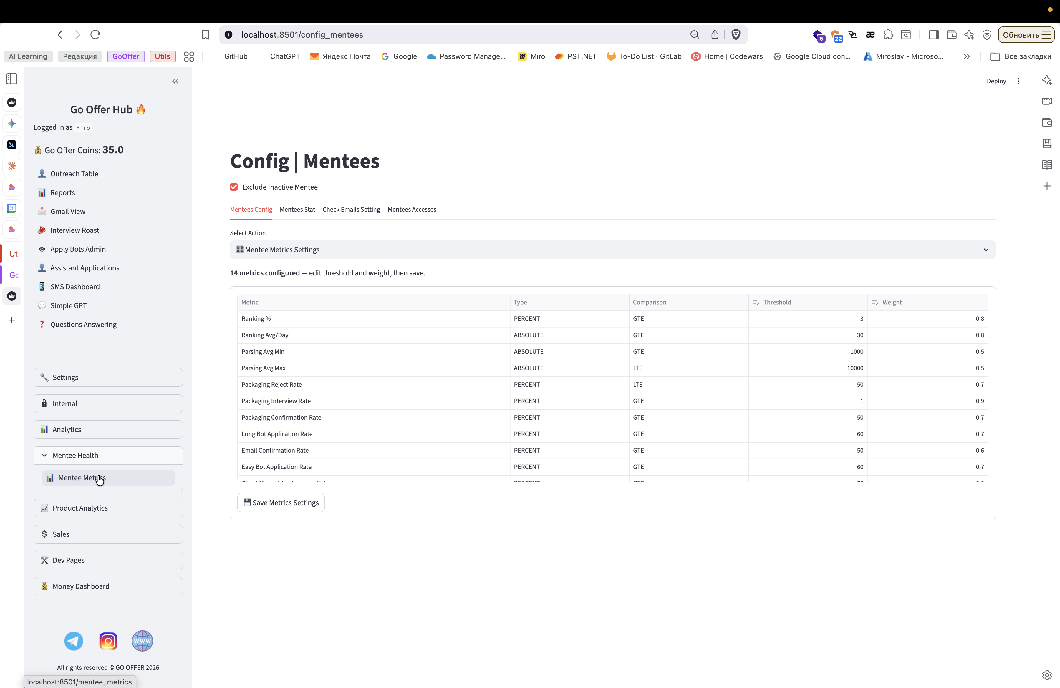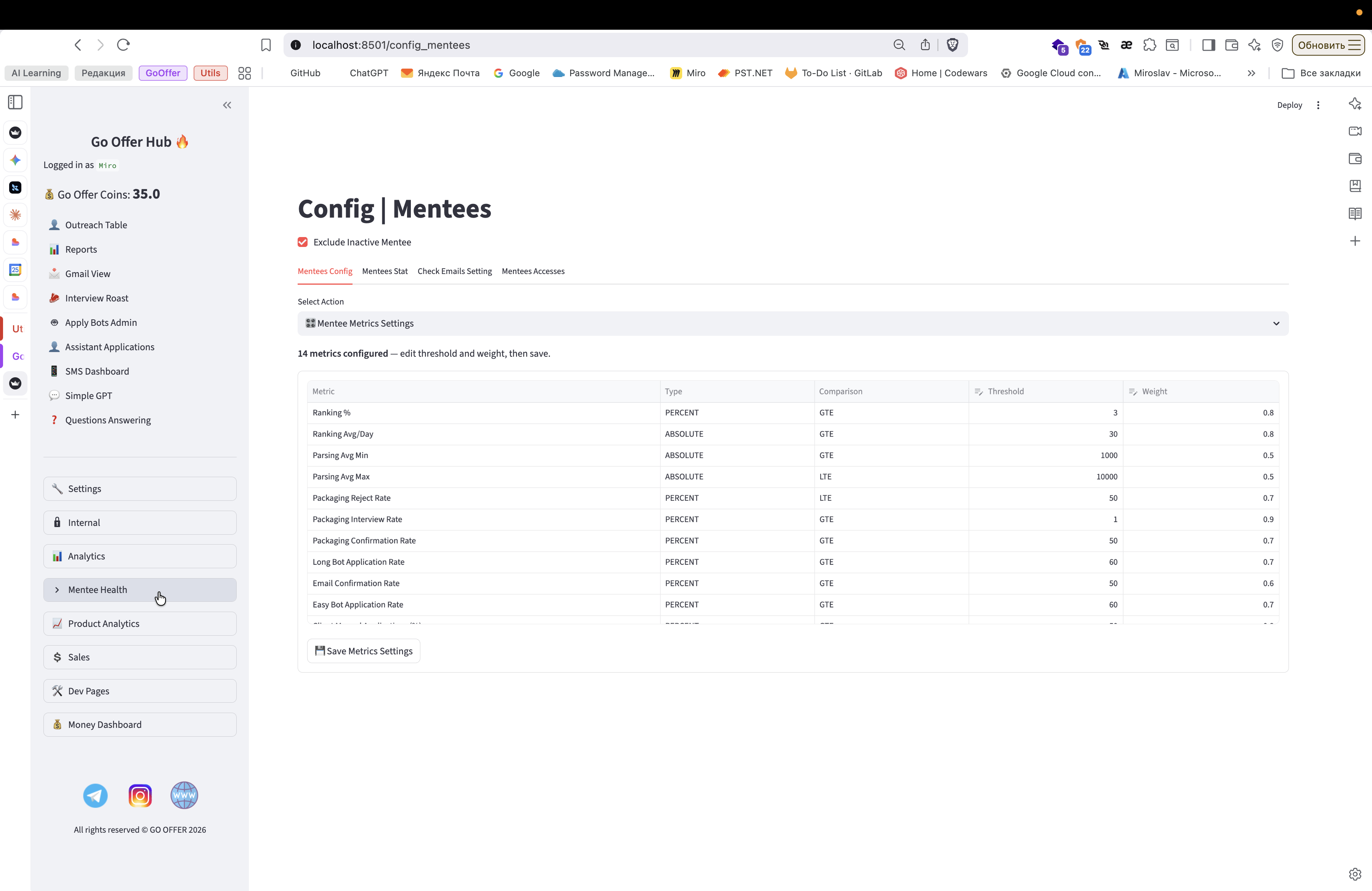 Mentee Metrics, автоматизация отчета кураторов