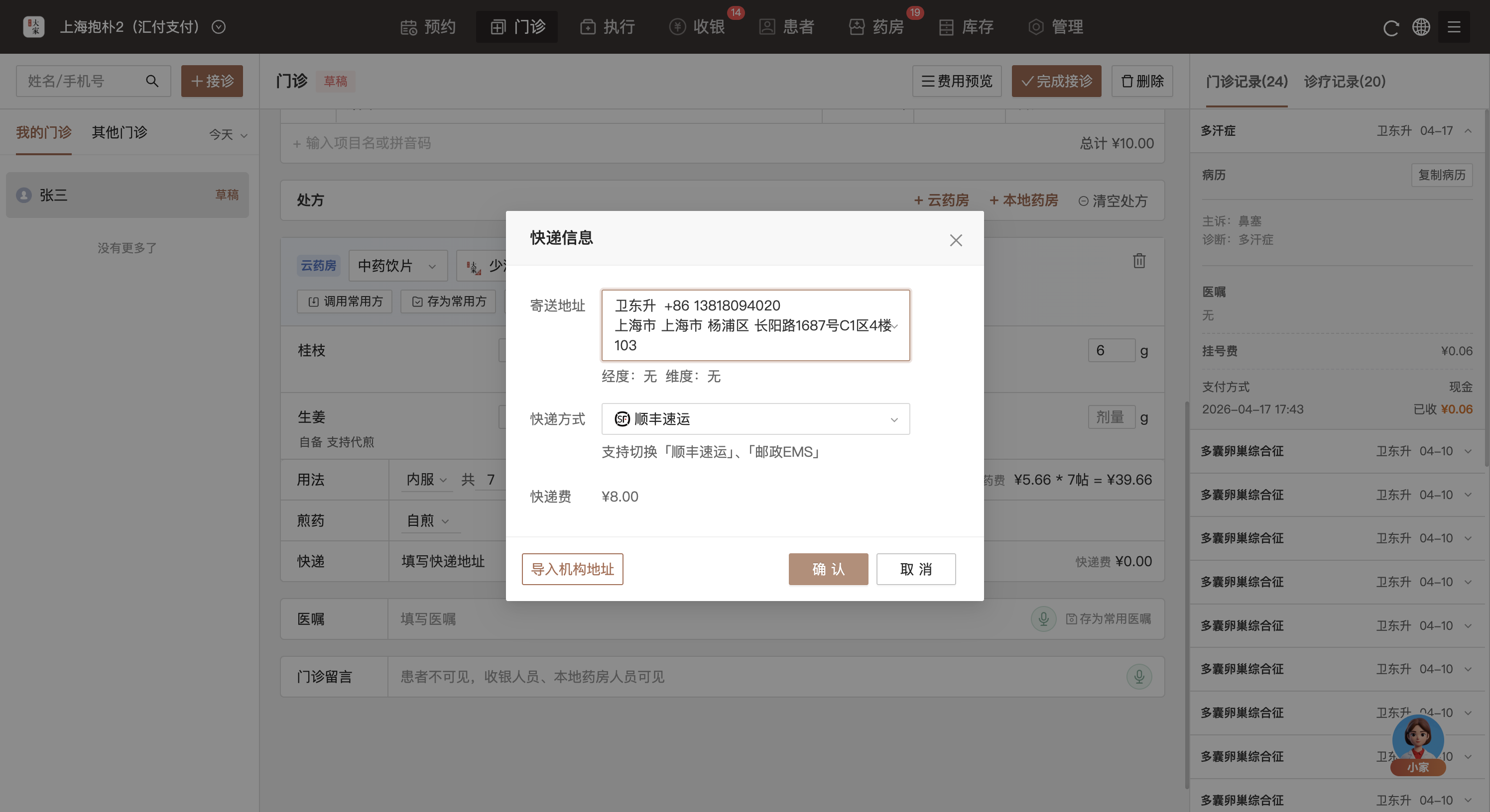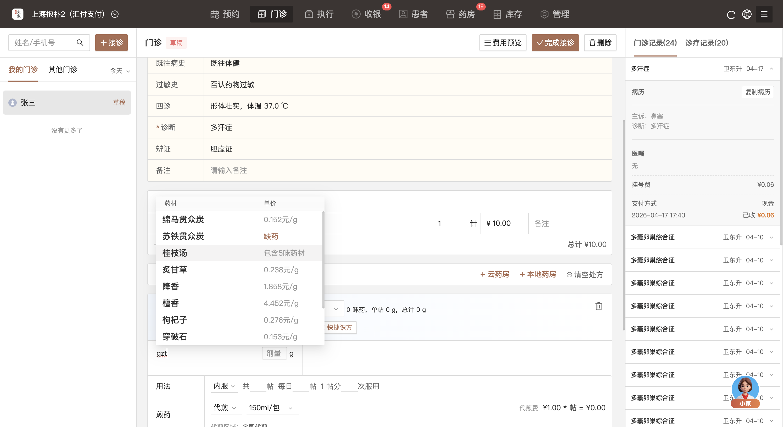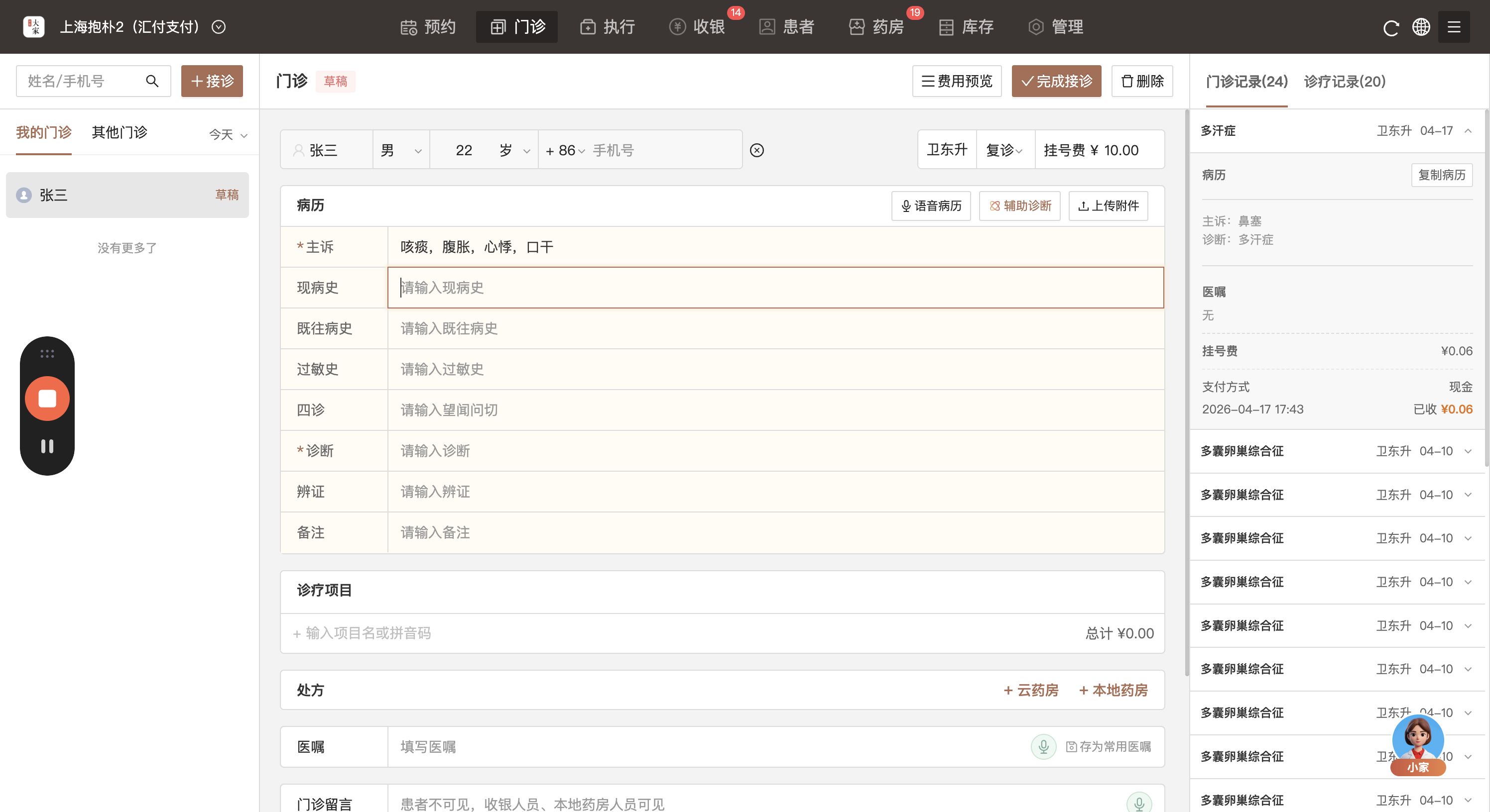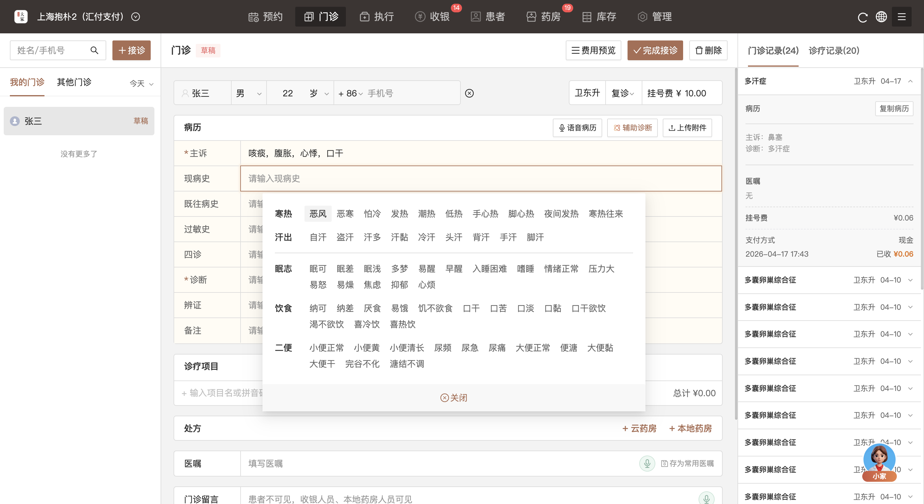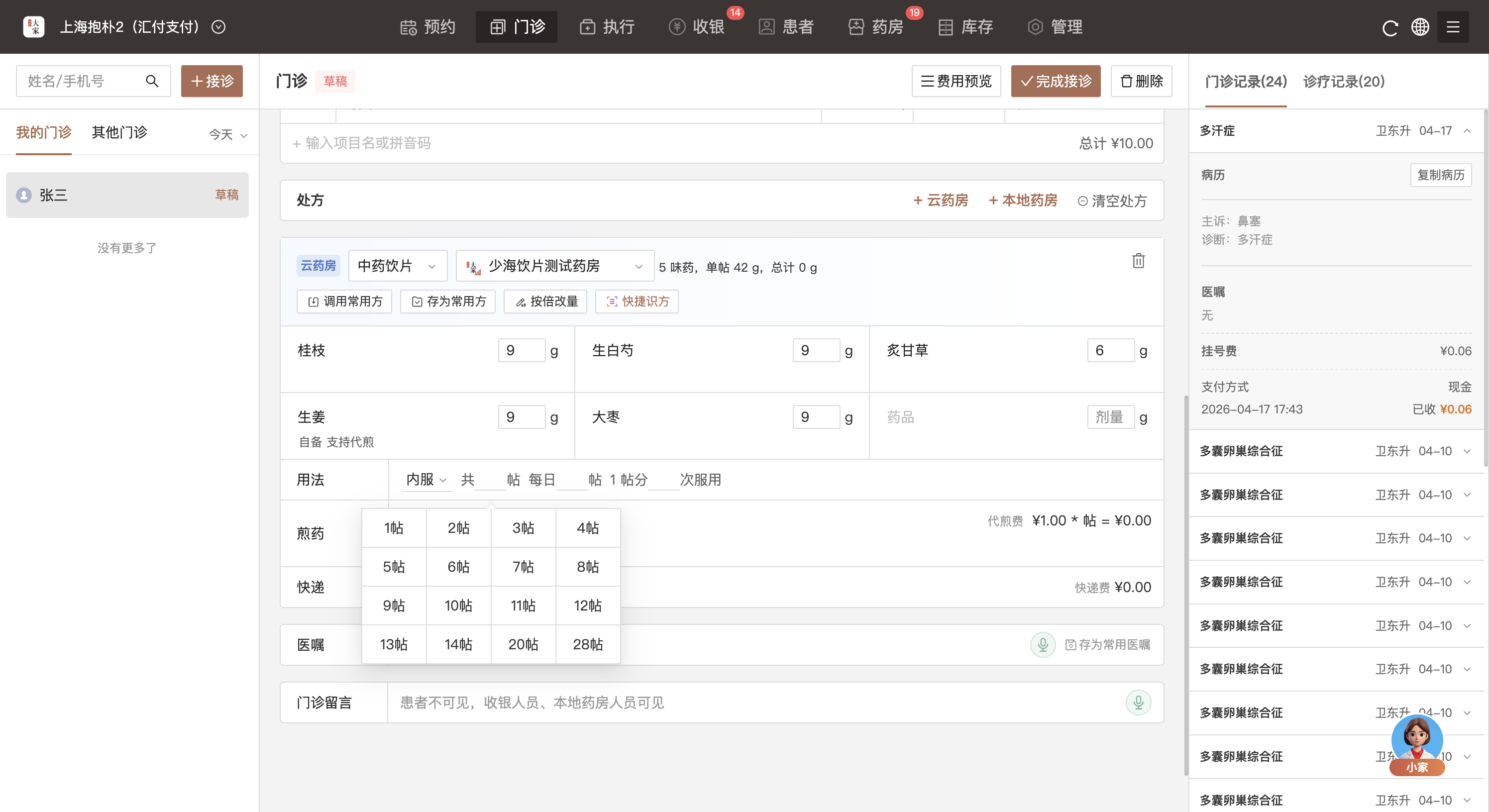 详细讲解如何在云诊所管理系统中完成接诊流程,包括快速调用患者信息、填写中医电子病历、开具中药处方以及设置快递寄药,提升门诊接诊效率。