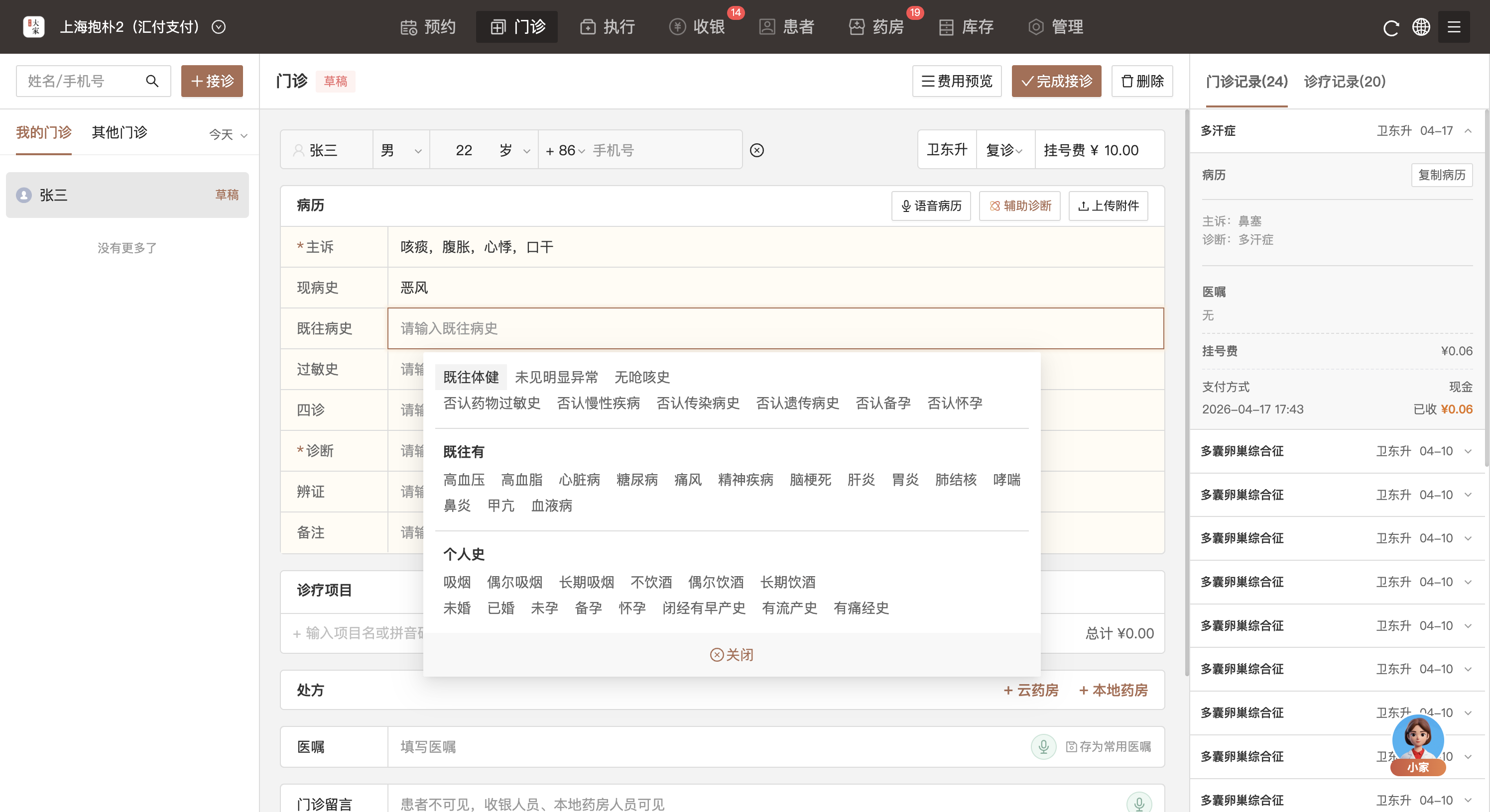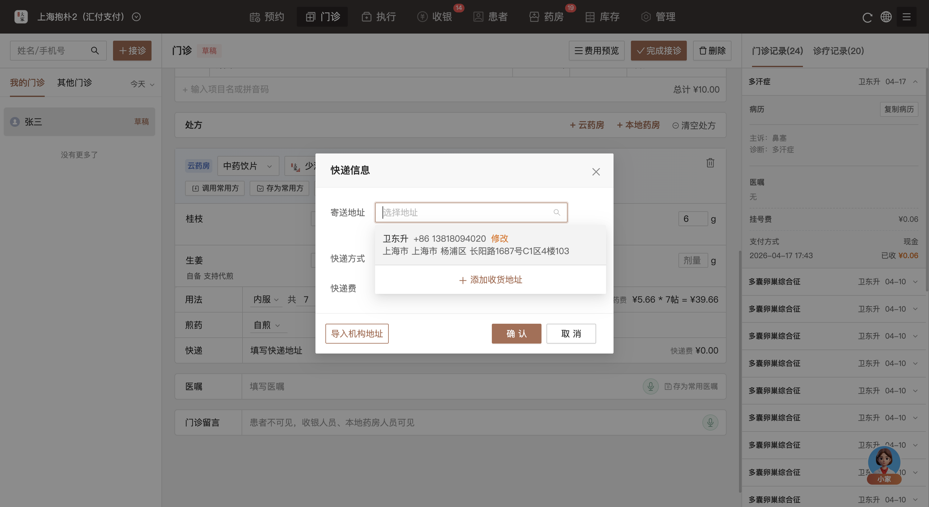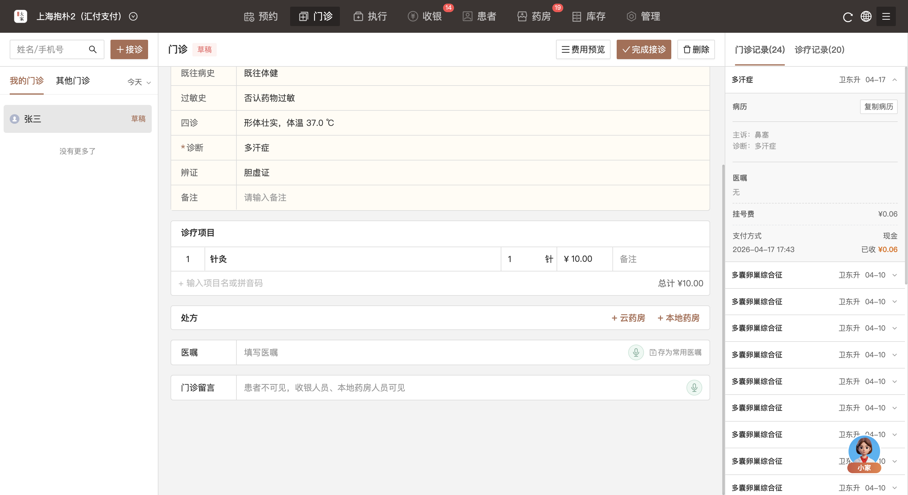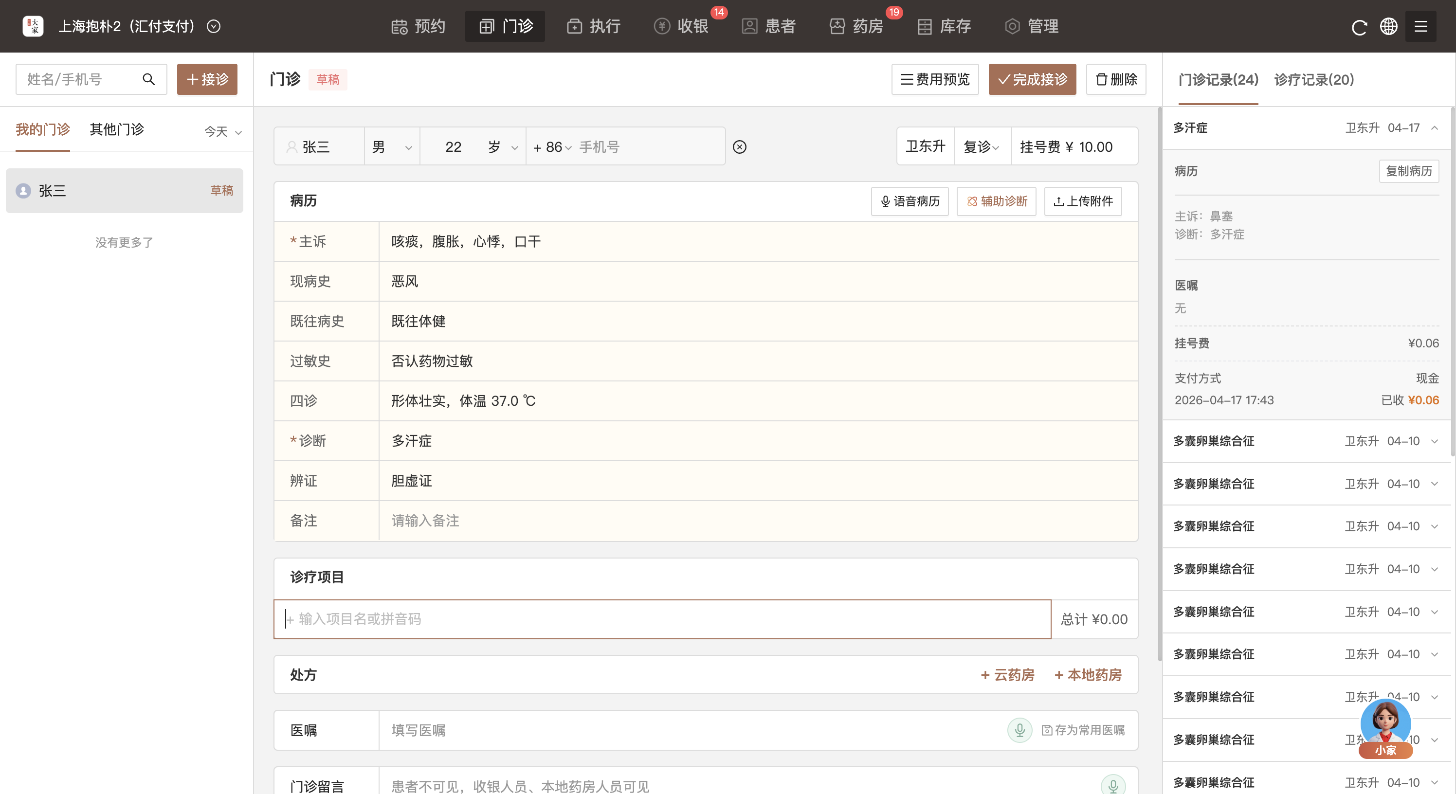 详细讲解如何在云诊所管理系统中完成接诊流程,包括快速调用患者信息、填写中医电子病历、开具中药处方以及设置快递寄药,提升门诊接诊效率。