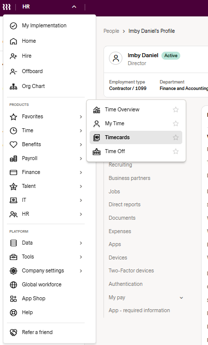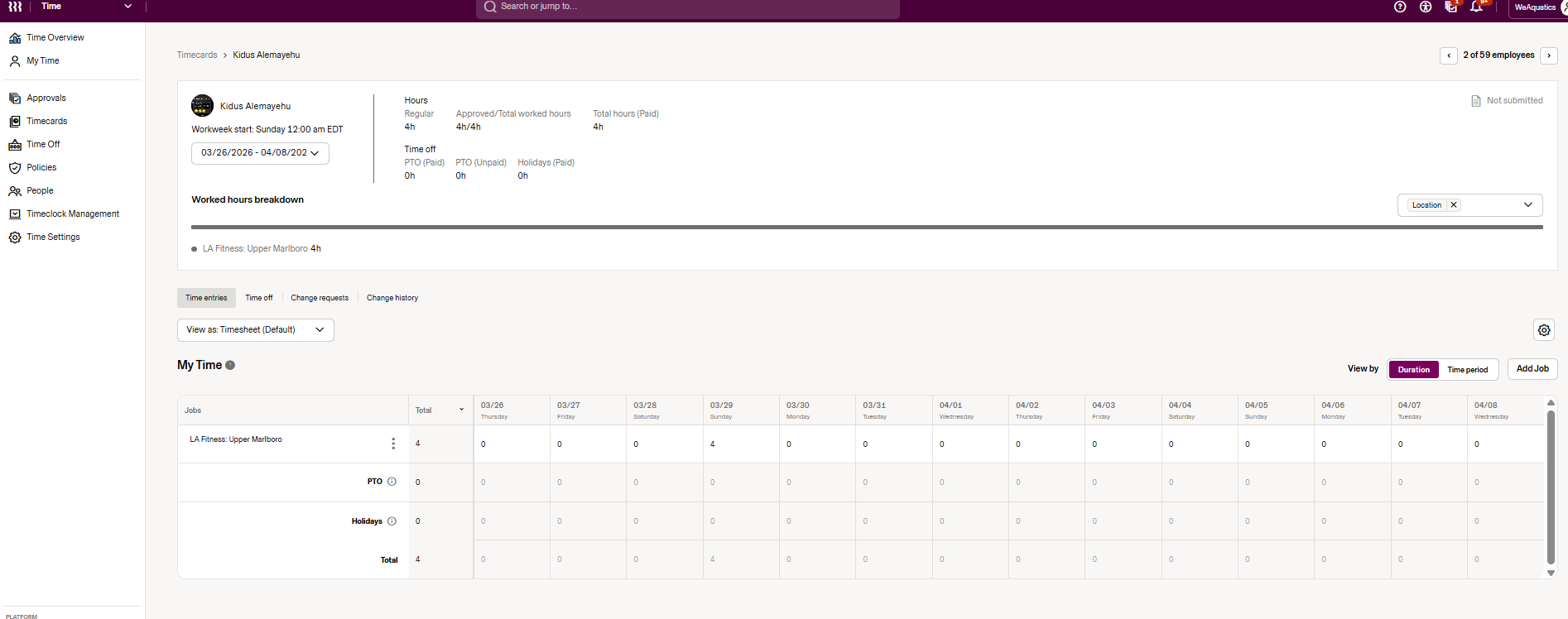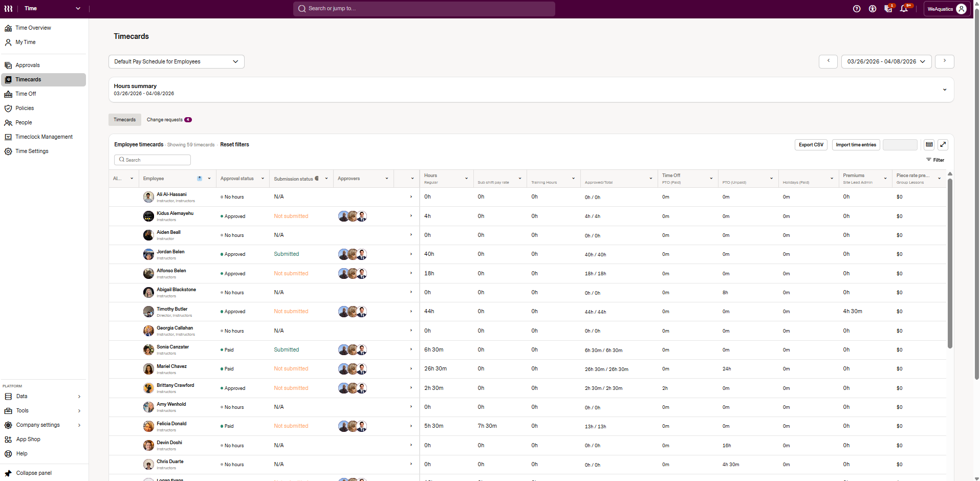 Next Select the Timecards on Rippling to list all our Swim Instructors in Ascending Order