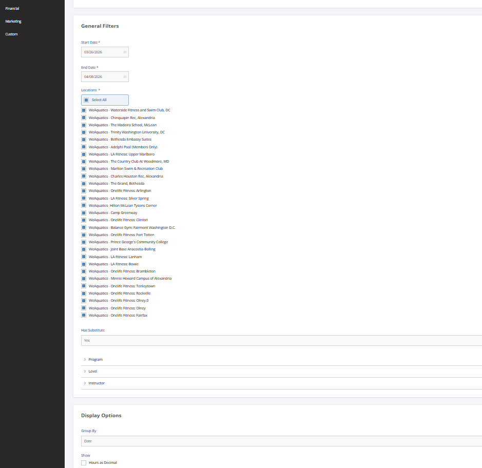 Next Pull Instructor Absences And Substitutions Report with all Locations checked with the current Payroll Date Range and insert into a google sheet