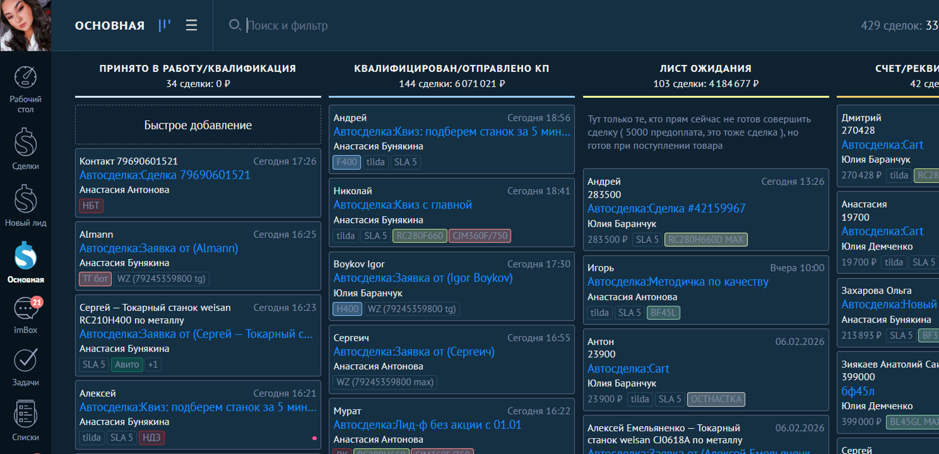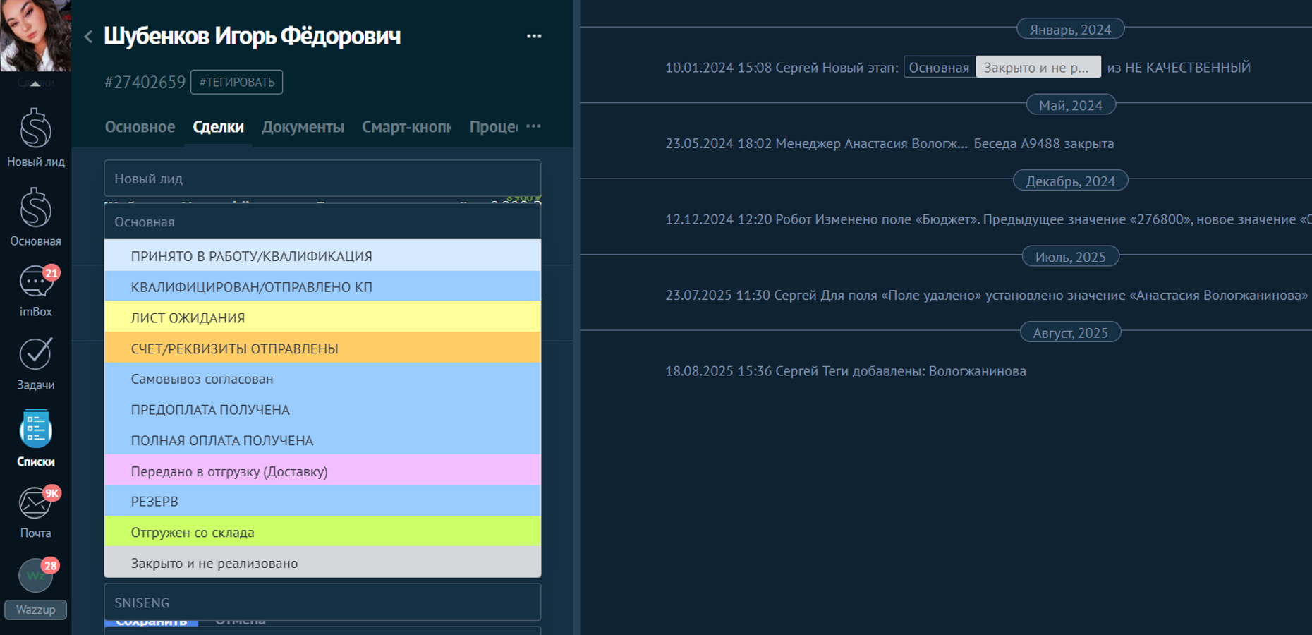 Пошаговая инструкция по созданию и ведению сделки в основной воронке продаж