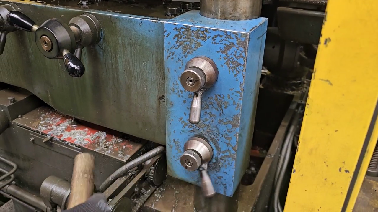 מדריך טכני שלב אחר שלב לביצוע סט-אפ והגדרת מיישרת עגולים, כולל פתיחת מגירת המיישרת, שחרור ברגי כיוון והחלפת פלסטיק המוביל במכונה.