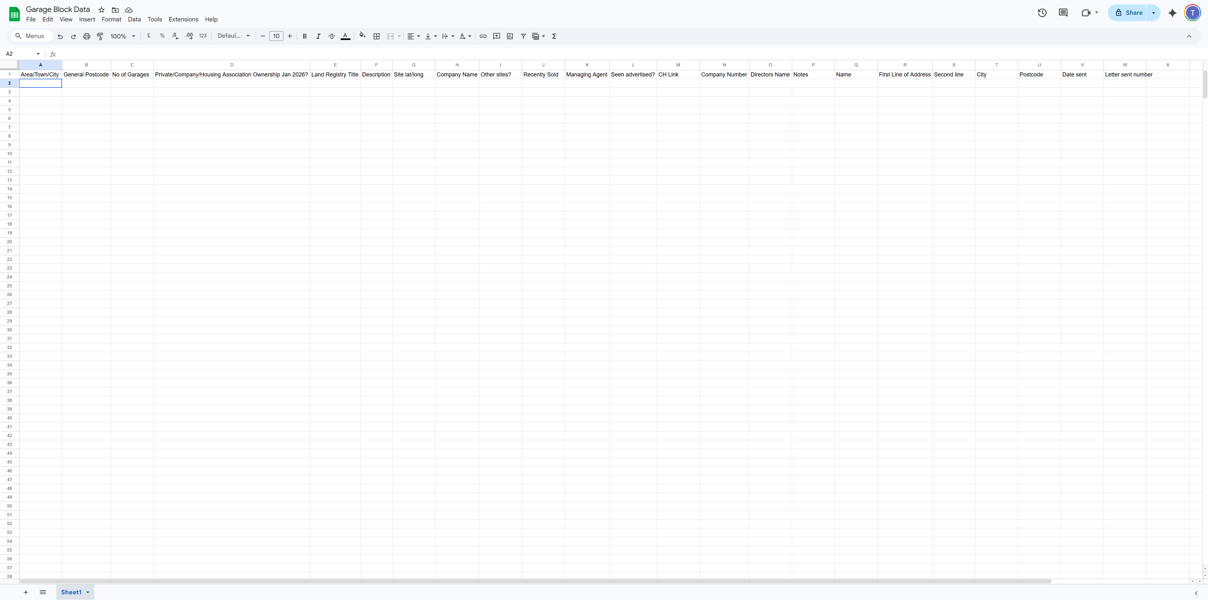 Learn how to systematically find privately owned garage blocks using LandWorth, PropertyData, and Google Maps, and log your findings in a tracking spreadsheet.