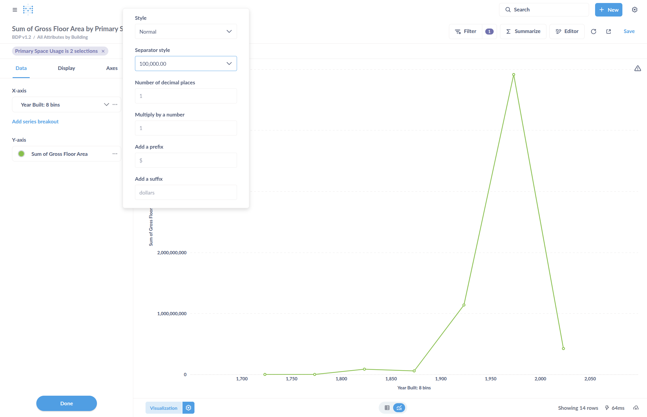 Change the number formatting style so that the Year Built does not include a comma. To do this, click Separator Style and select the option without commas.
