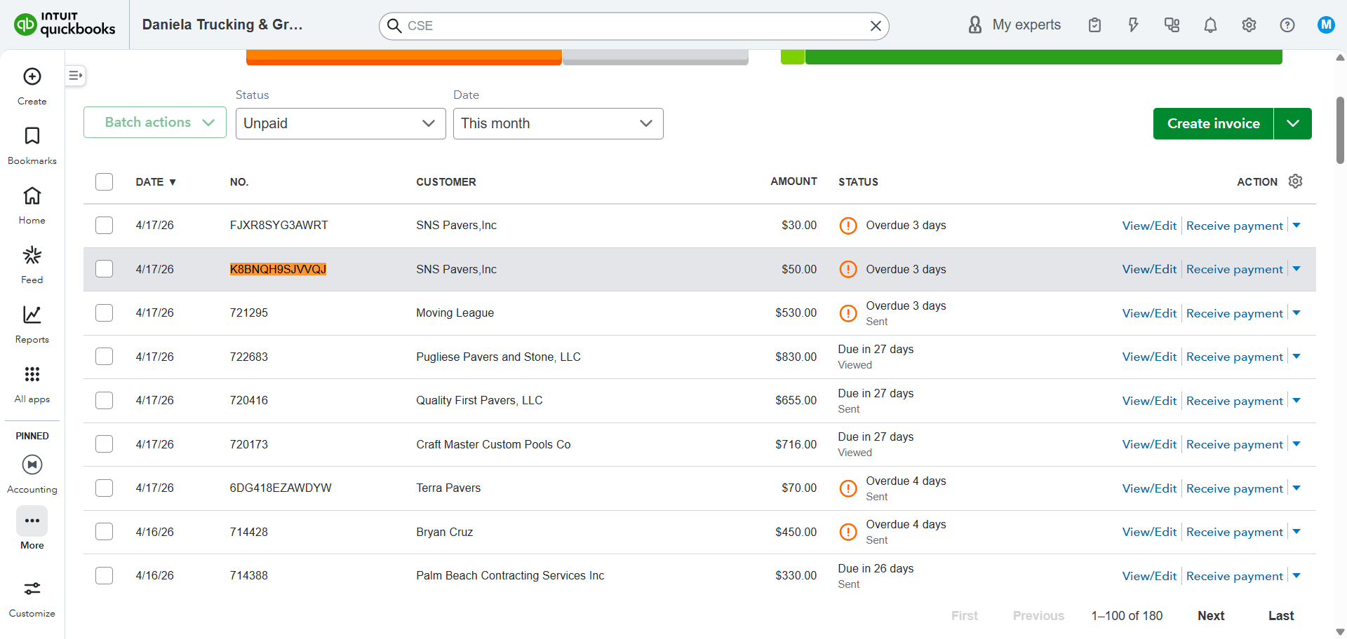 Navigate to your QuickBooks invoice list and look for the corresponding entry.