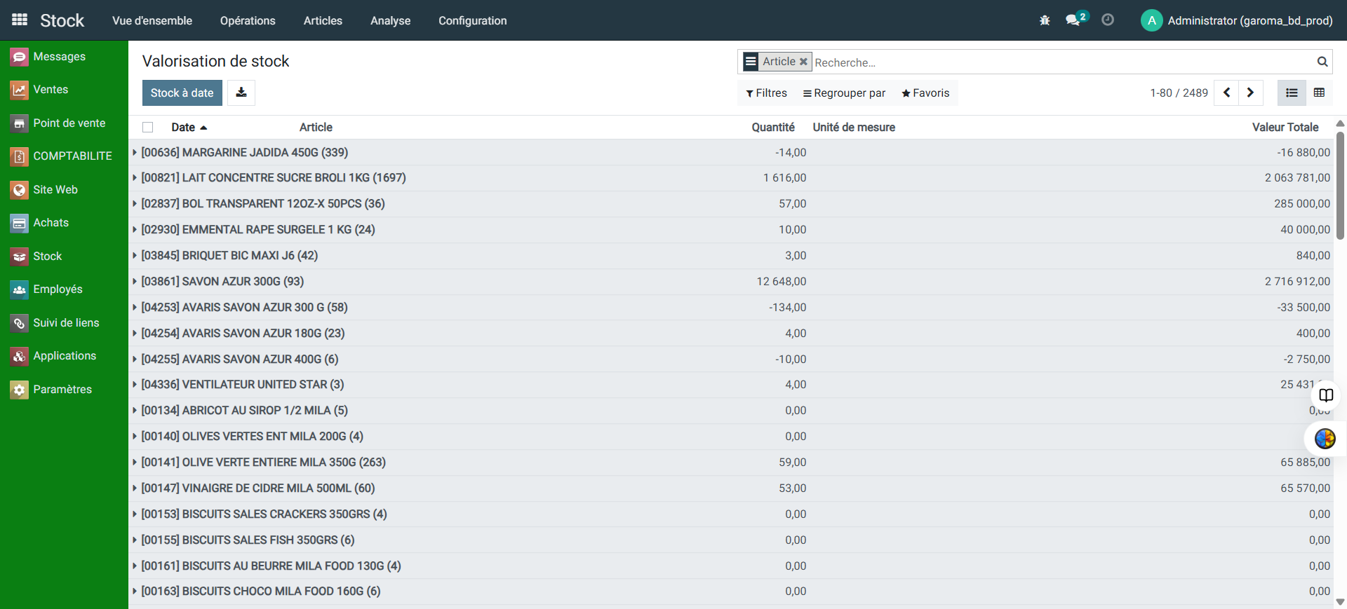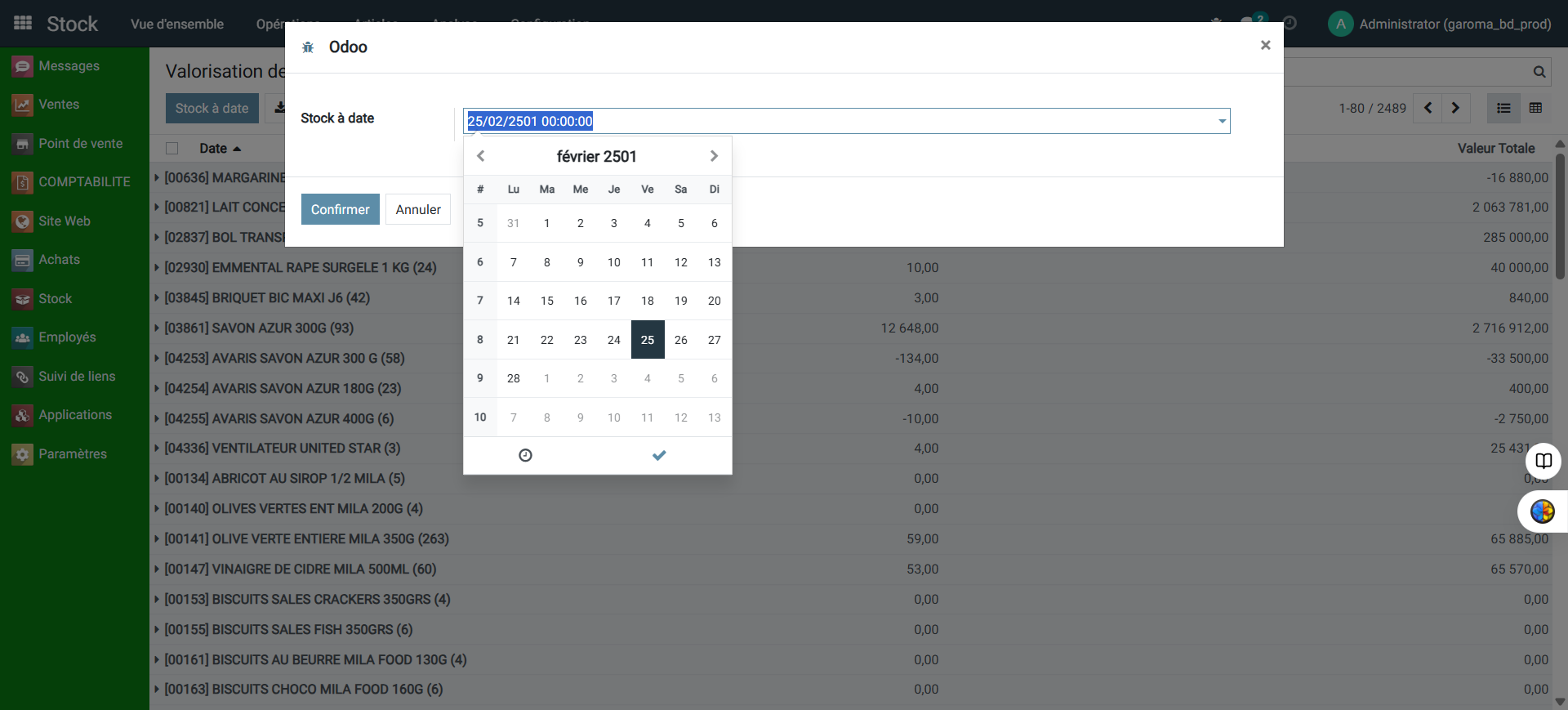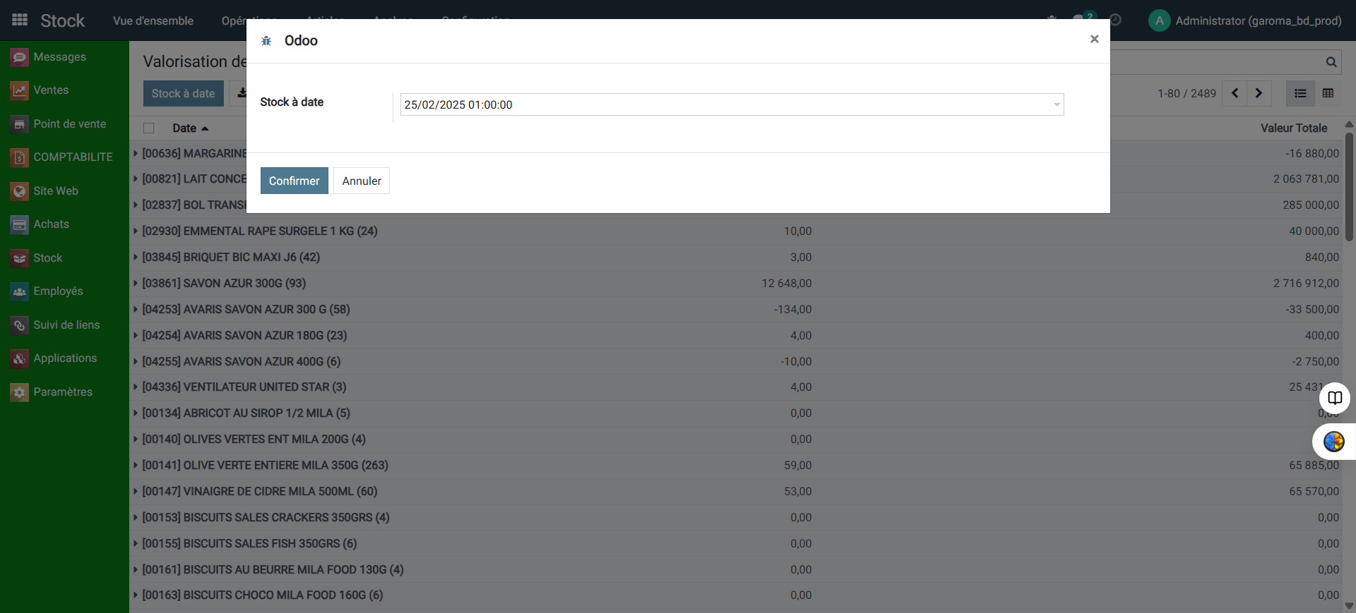Comment consulter la valorisation des stocks à date