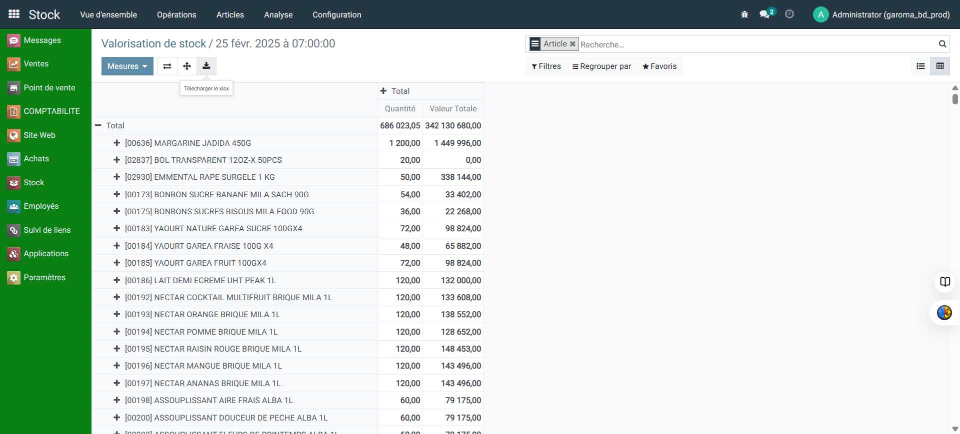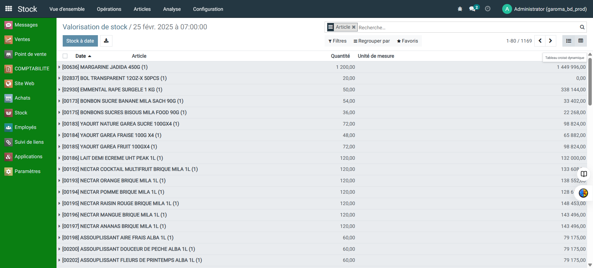 Découvrez comment générer, afficher en tableau croisé dynamique et exporter le rapport de valorisation de vos stocks à une date précise dans votre ERP.