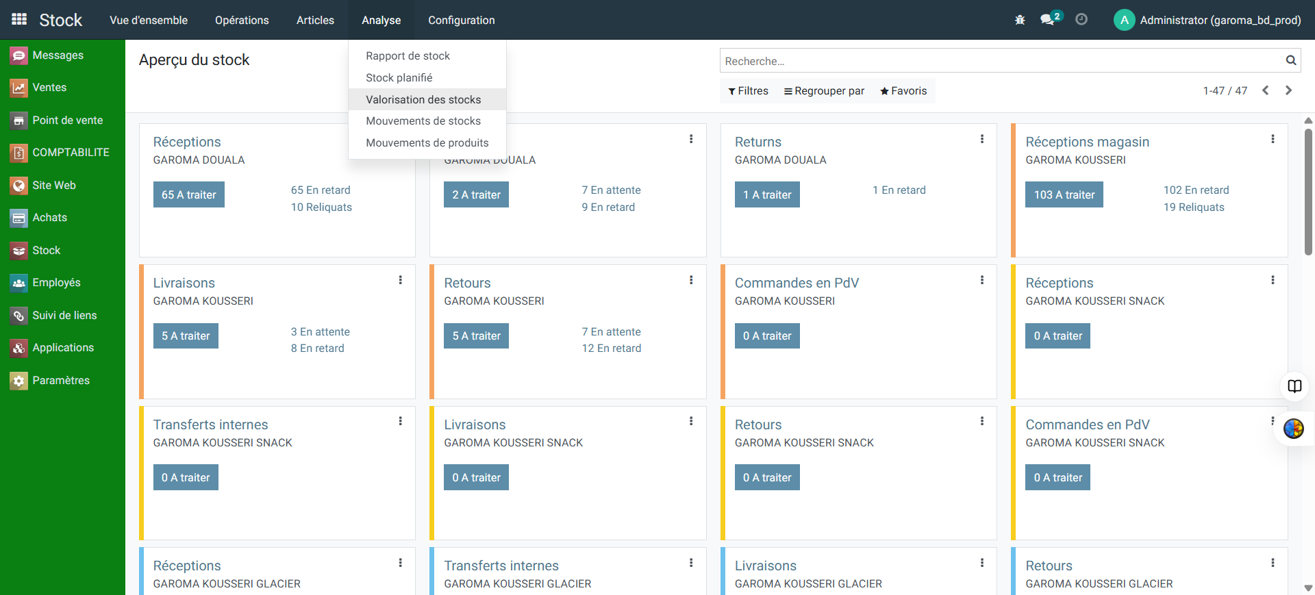 Ouvrez l'onglet Analyse et cliquez sur Valorisation des stocks.