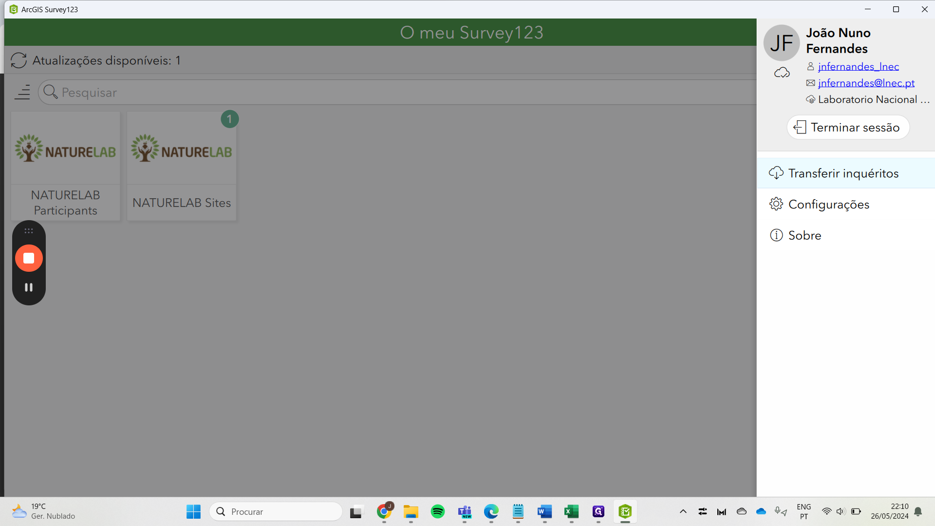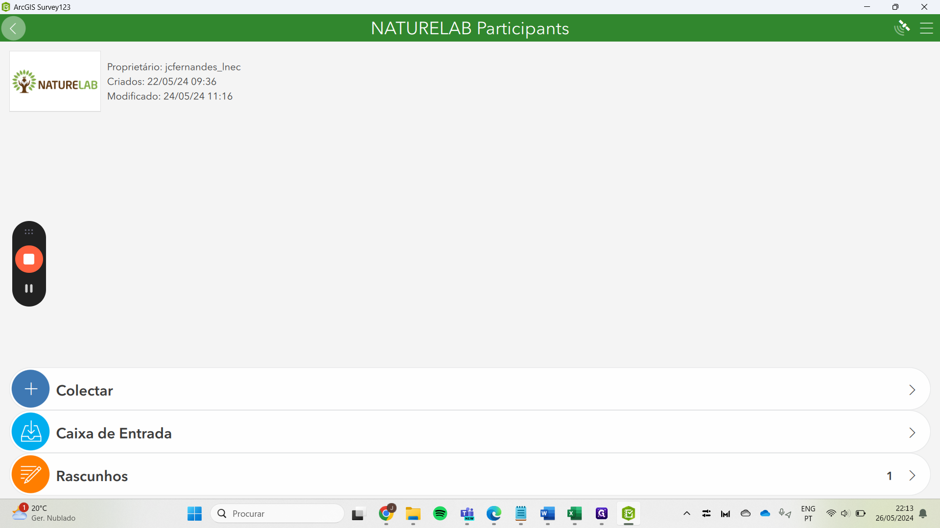 After João Carlos Fernandes grants you access, you can come to this place and find the NatureLab app for websites and participants.