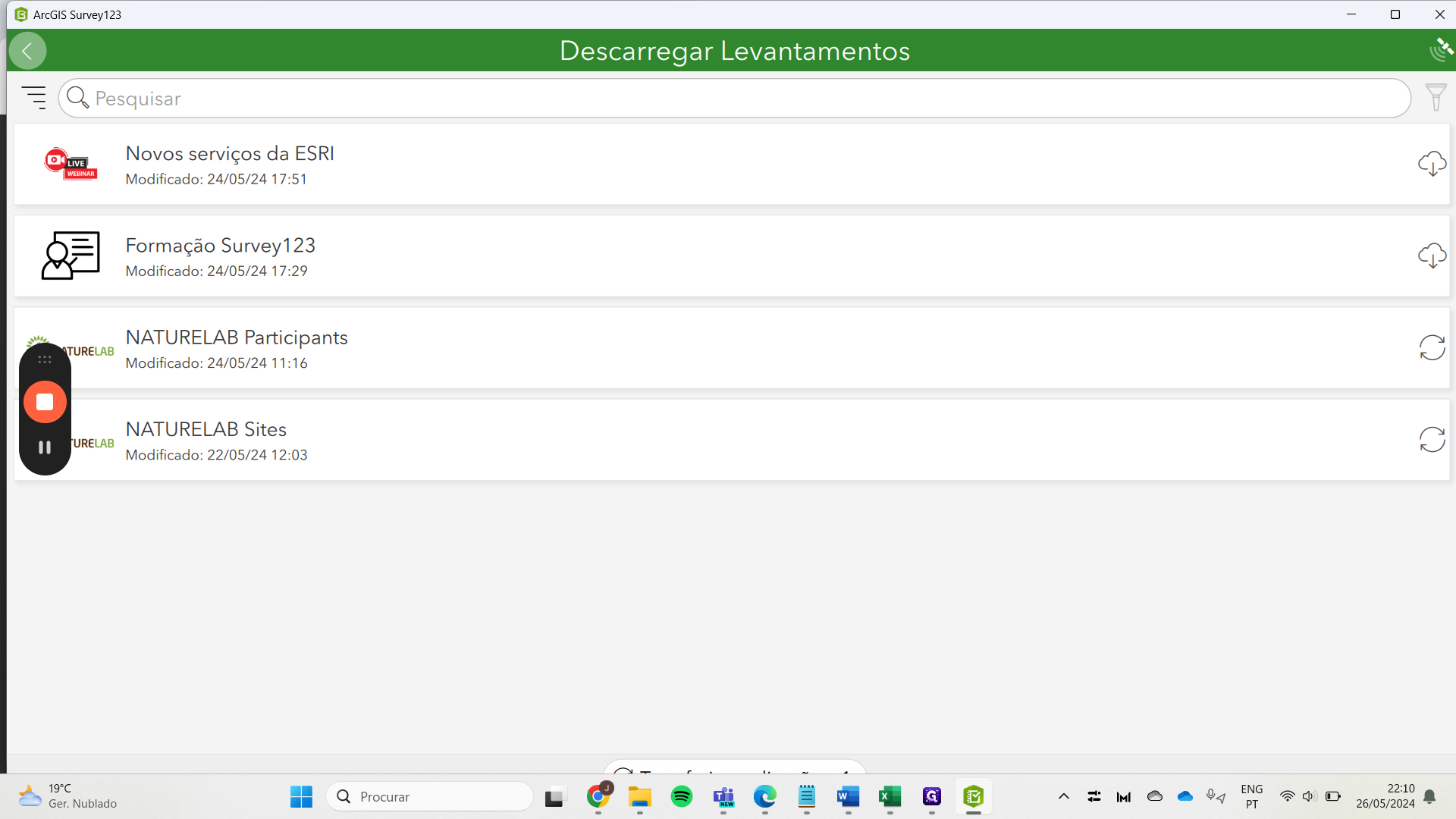 We are calling here to open the program, and as you can see, it is opening. I have already started my session. It is very important to go to the user area, not the client area, and as you can see, there are survey downloads available.